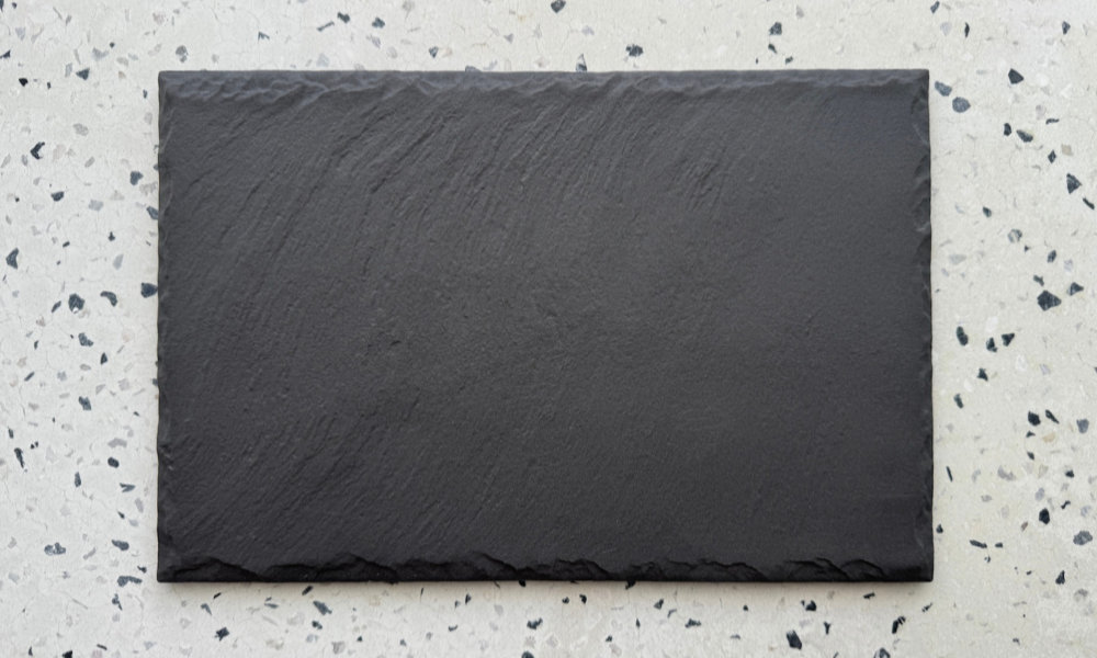 Die Servierplatte besteht aus langlebigem Feinsteinzeug, das eine matte, schieferähnliche Oberfläche besitzt. Laut SLAÏRE ist das Material besonders dicht, pflegeleicht, hitzebeständig und dient als robuste Basis für den täglichen Einsatz. Die leicht strukturierte Oberfläche wirkt wie echter Stein, bleibt aber hygienisch, geschmacksneutral und unkompliziert zu reinigen.