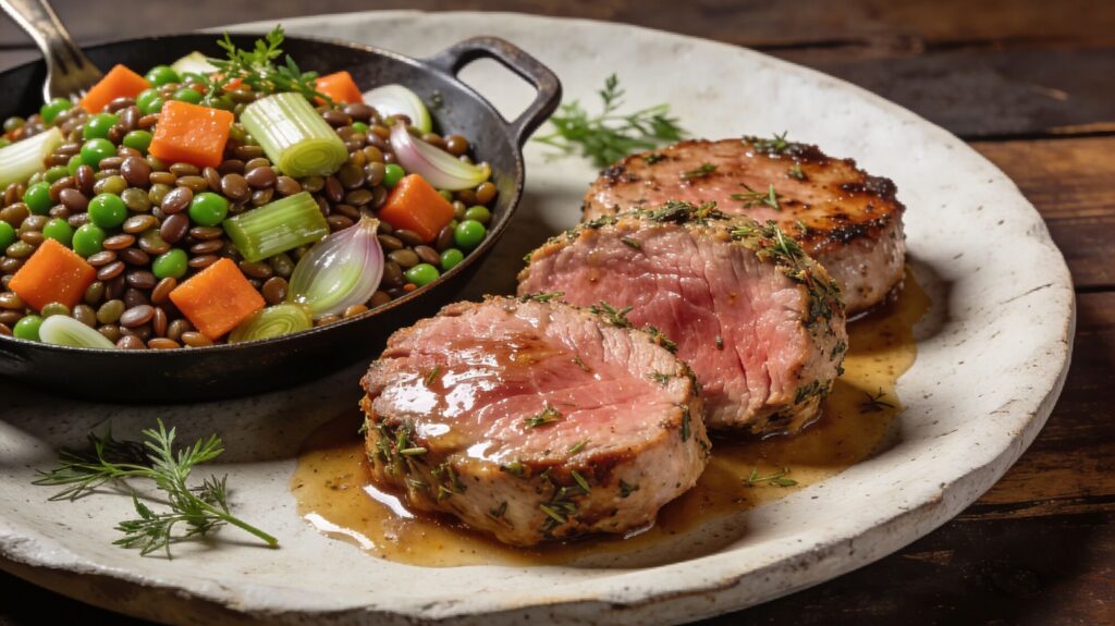 🔥 Zubereitung – Wildschweinmedaillons mit Linsen-Gemüse-Pfanne